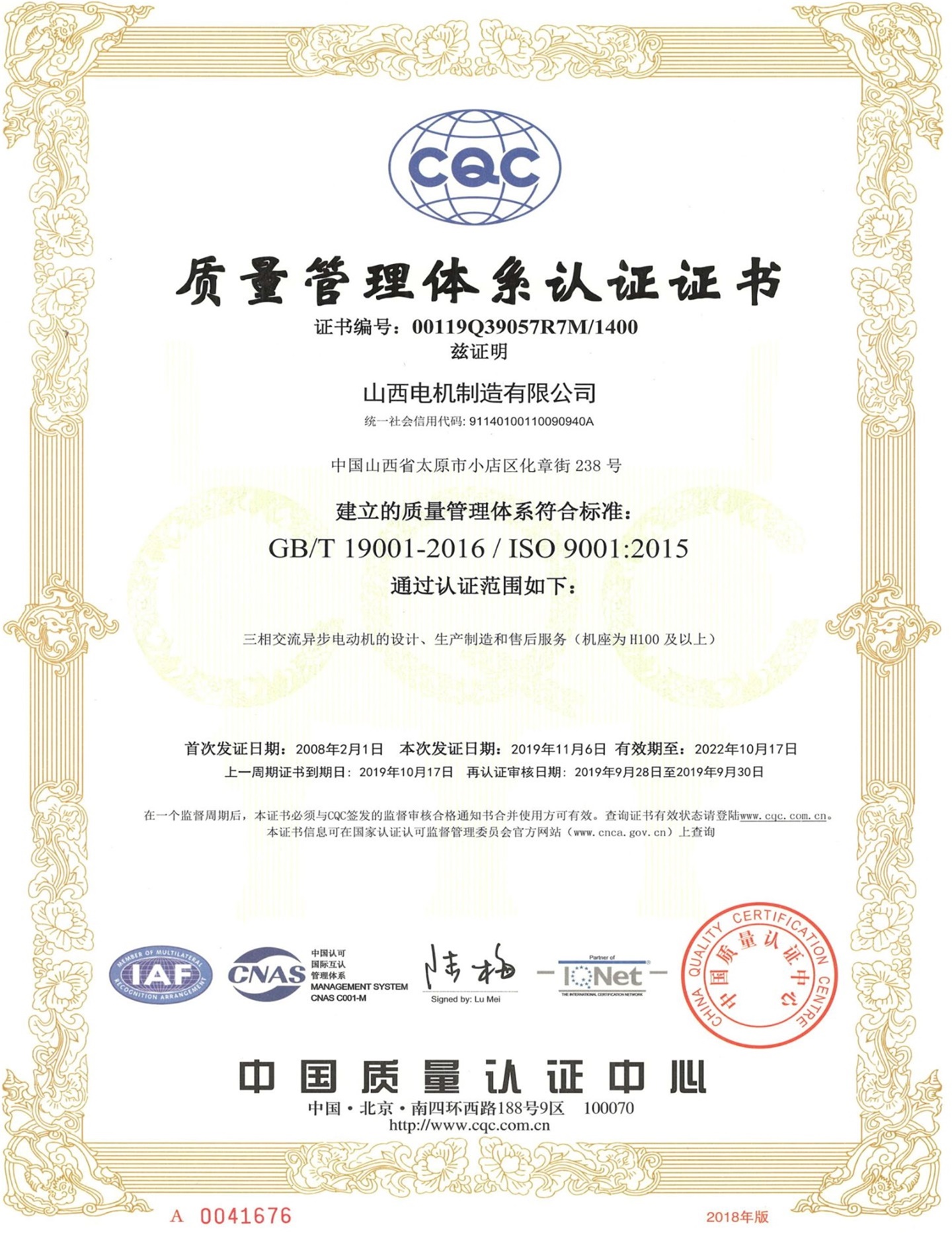 山西電機制造有限公司是一家具有70多年歷史,專業研發制造三相異步電動機的老牌國有企業,注冊資金26250萬元,現有在崗職工一千余人。2014年5月完成整體搬遷改造,現址位于太原市小店區化章街238號,新增設備投資約5個億,整體裝備水平得到大幅提高。公司深度融合技術創新與精工制造,成功躋身"國家級高新技術企業"行列,并榮獲"省級專精特新中小企業"認證。作為中國電器工業協會中小型電機分會副理事長單位,公司持續踐行質量強企戰略,相繼獲評國家級AAA企業信用等級、山西省"守合同重信用"企業,榮膺"中國最具影響力品牌企業"稱號。通過了質量管理體系、環境管理體系、職業健康安全管理體系認證,以及能源管理與知識產權管理體系認證。產品憑借卓越品質斬獲"山西省名牌產品"殊榮,在行業內樹立起極具辨識度的品牌標桿,贏得市場廣泛認可與信賴。